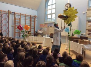 This saw Sally, played by Rosie Walker, along with her travelling suitcases, present an interactive play all about the science of food for Key Stage 1 and Key Stage 2.